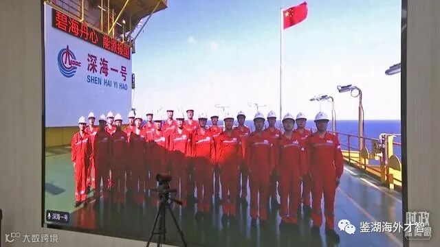 △当天,与习近平视频连线的“深海一号”作业平台前方工作人员。(总台央视记者段德文拍摄)
