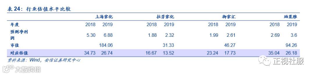 截止2019年1月18日收盘,珀莱雅市值为94.26亿元,对应2018/2019年PE分别为35/26倍。由于珀莱雅业绩高于行业水平、激励到位业绩增速确定性较高,给予高于行业水平估值,目标价57.31元,对应2019年32xPE。