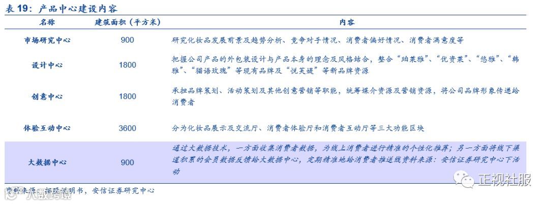 产品中心的建成将有效弥补产品整体创意设计和精准营销等方面的短板。为了及时调整公司发展规划和营销策略,使公司战略更迎合市场发展趋势,公司使用总建筑面积 9,000 平方米的珀莱雅大厦,建立市场研究中心、设计中心、创意中心、体验互动中心和大数据中心五大板块。公司在产品整体创意设计、精准营销、对消费者的大数据分析及使用等方面相对薄弱。产品中心的建成将有效提升公司产品在市场上的竞争力,满足公司长远发展的需要。