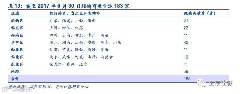借助终端经销商资源及优势,迅速抢占市场份额。截至2017年6月30日,“珀莱雅”品牌正在合作的线下经销商数量125家,线上经销商58家。终端销售网点主要为日化专营店、商场、超市和线上淘宝店三种形式。