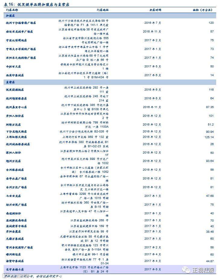 公司从2016年起坚定布局单品牌店,截止2017年底,公司已有悦芙媞单品牌店31家、优资莱单品牌店开店126家;2018年公司继续快速布局优资莱单品牌店、并尝试拓展珀莱雅单品牌店。