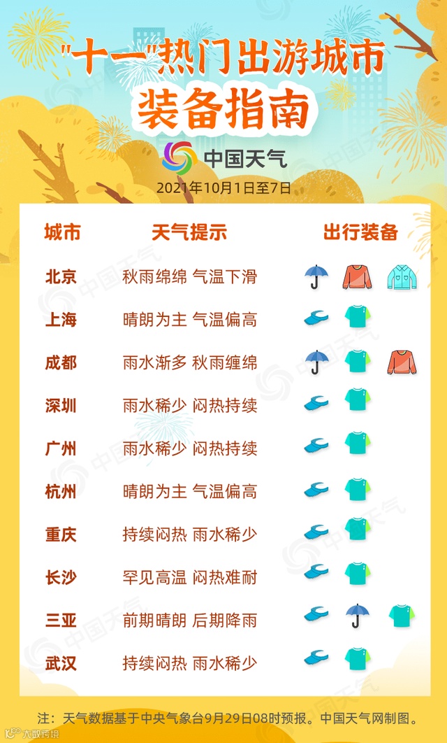导读:不论是出行中还是即将出行之前,了解一下目的地的天气情况都是非常有必要的~这个假期天气有点闹腾,北方天气降雨降