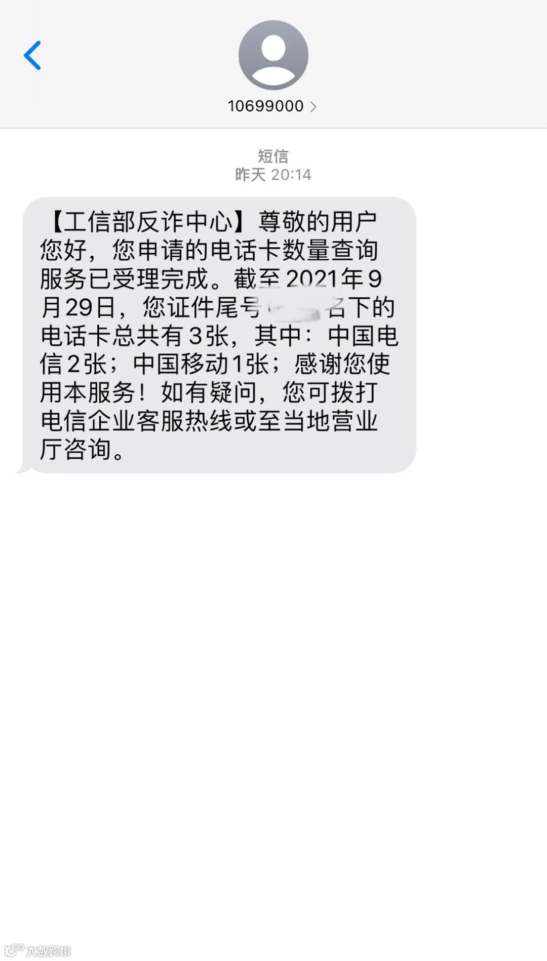 你名下的三家基础电信企业、移动转售企业的全国移动电话卡数量