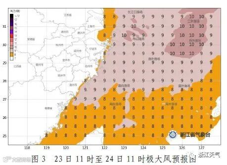 受其影响,今明两天东海海面有9~11级大风;今天夜里起浙江省沿海海面有8~9级大风,杭州湾水面有6~8级阵风。注意防范海上大风的不利影响。