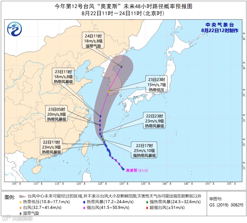 今年第12号台风“奥麦斯”,今天14时中心位于距离日本冲绳县那霸市西偏南方向约260公里的洋面上,中心附近最大风力9级(23米/秒,热带风暴级),中心最低气压995百帕。