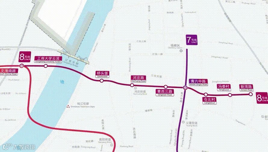 杭州地铁8号线路全长17.1公里,共设9个站,全部位于钱塘区内,其中换乘站2座,分别在文海南路站与1号线换乘、青六中路站与7号线换乘。列车采用4动2拖6辆编组,A型铝合金焊接鼓型车体,最高运行速度100公里/小时,最大载客能力2460人。