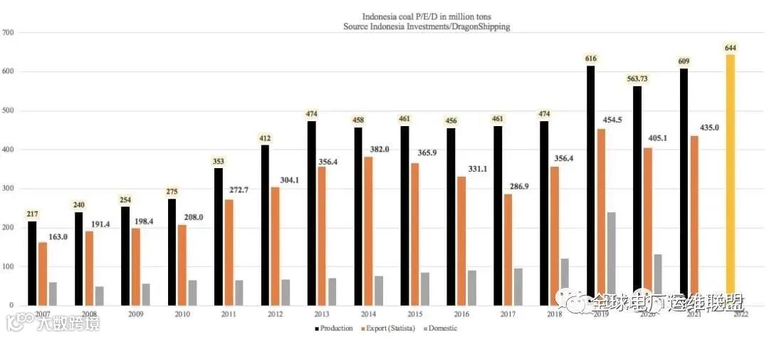 (印度尼西亚煤炭产量 出口 国内用量)