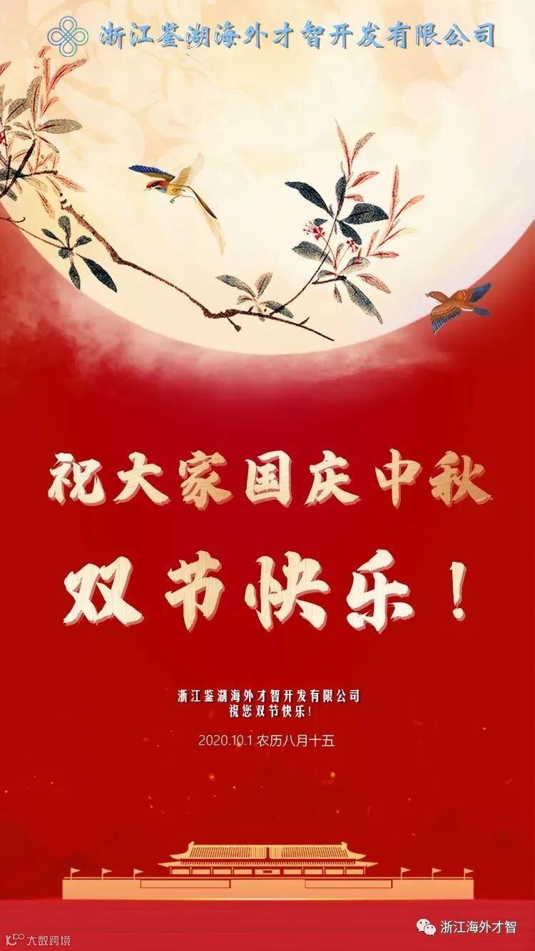 浙江鉴湖海外才智开发有限公司祝大家双节快乐!