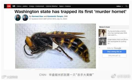 7月31日,美国华盛顿州官员宣布,本周终于用陷阱抓到了第一只“杀手大黄蜂”,这项举动有望帮助科学家一举摧毁大黄蜂的巢穴。据悉,该州目前已发现5只“杀手大黄蜂”。华盛顿州立大学专家称,这是世界上最大的黄蜂,如果被其毒刺多次刺中,可导致人类死亡。