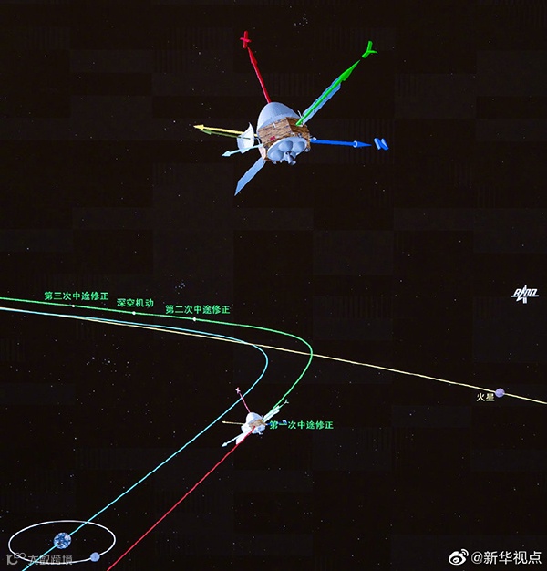 7、“天问一号”探测器完成第一次轨道中途修正