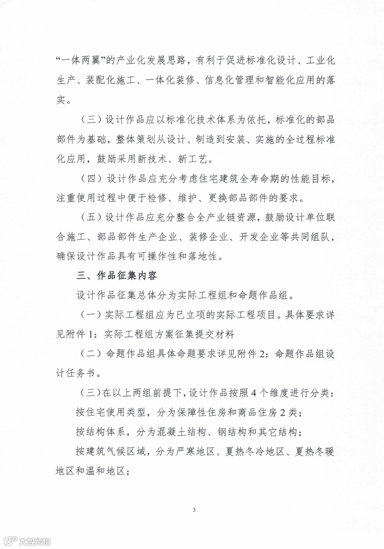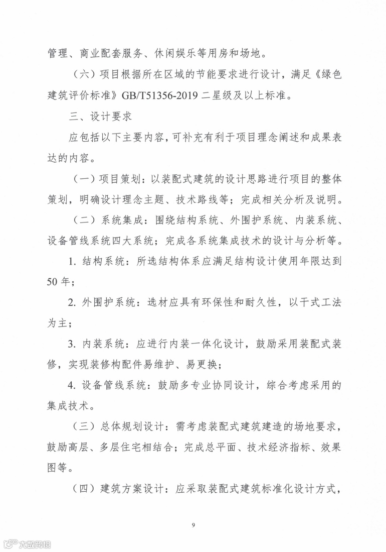 (五)设计作品应充分整合全产业链资源,鼓励设计单位联合施工、部品部件生产企业、装修企业、开发企业等共同组队,确保设计作品具有可操作性和落地性。