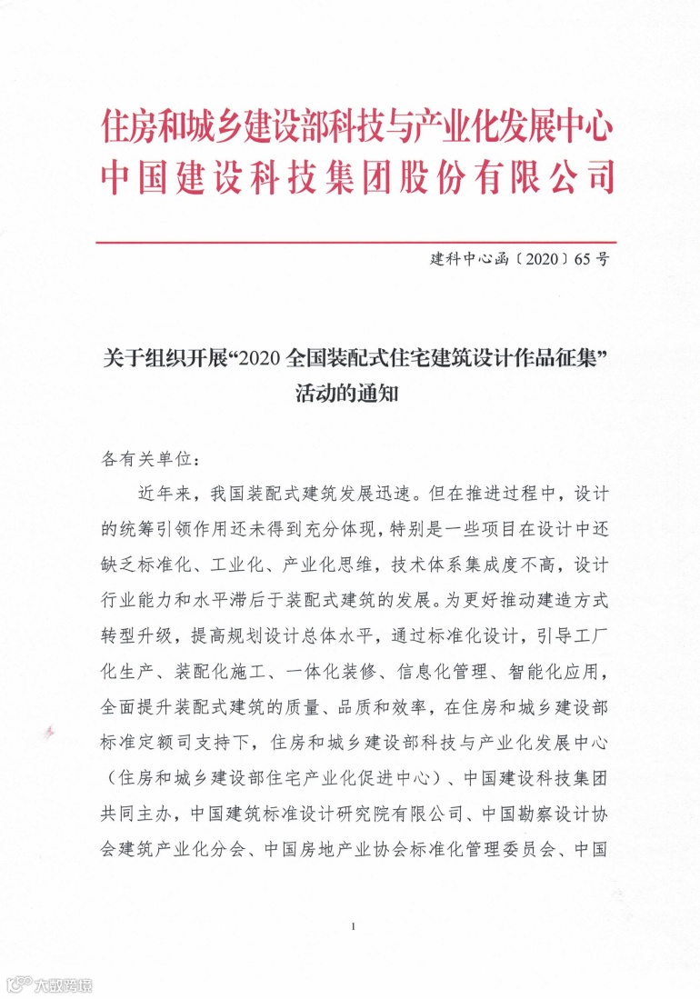关于组织开展“2020全国装配式住宅建筑设计作品征集”活动的通知