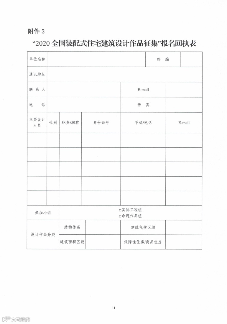 附件3:“2020全国装配式住宅建筑设计作品征集”报名回执表