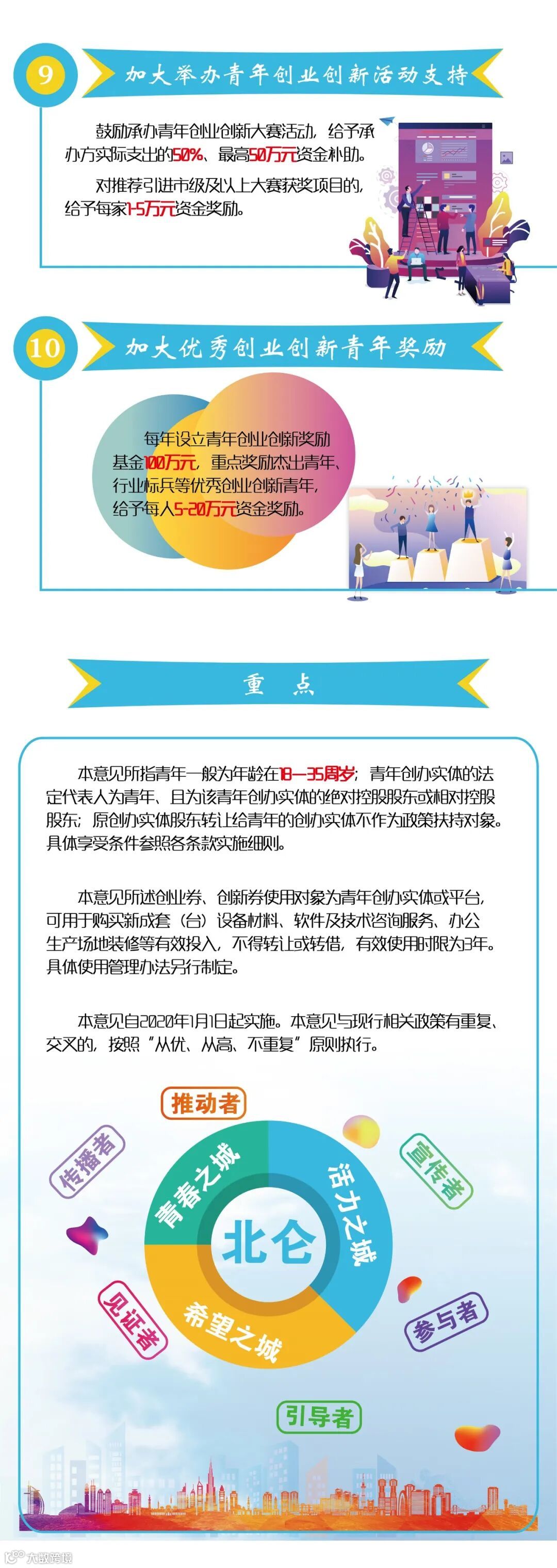 《意见》自2020年1月1日起实施,按照“从优、从高、不重复”原则执行;相关条款的15个实施细则也已同步出台。为确保疫情期间“青年北仑”政策的有效执行,北仑对部分条款实施进行了调整,并在大数据分析基础上,对2019年“青年北仑”政策进行了优化提升。