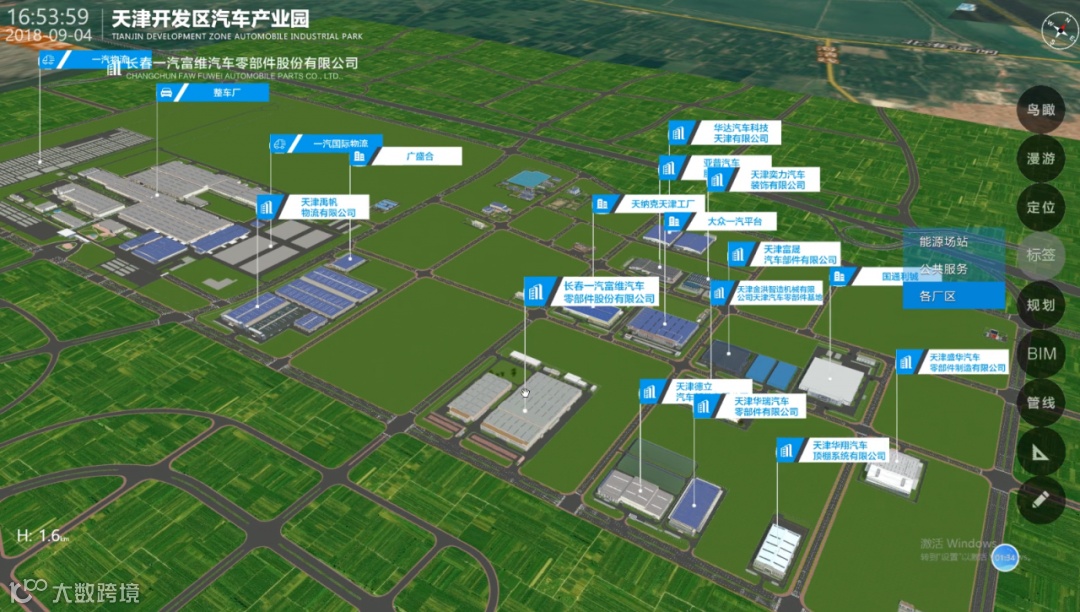 BIM+GIS模型多媒体交互展示系统:本项目应用数据模型展示系统对园区CIM数据、第三方专业数据等信息进行整合,对园区内的地下管网、地上设施等数据模型进行可视化、全方位、交互式展示:二、三维多媒体技术展示基地厂区信息、灵活定制封装满足不同展示需求、触摸测绘功能实时测量地块长度及面积、触控标注功能手绘批注,使沟通便捷人性化,全方位展现基地的空间位置、地理、交通、经济优势、历史、现状、规划、驻区企业及发展空间等内容。