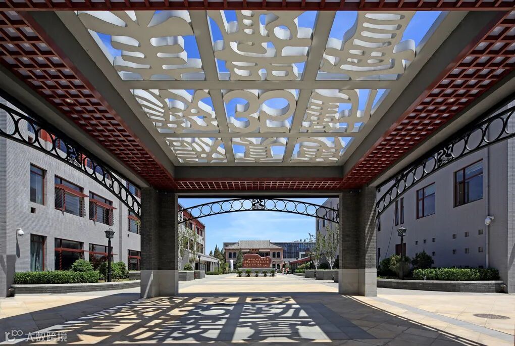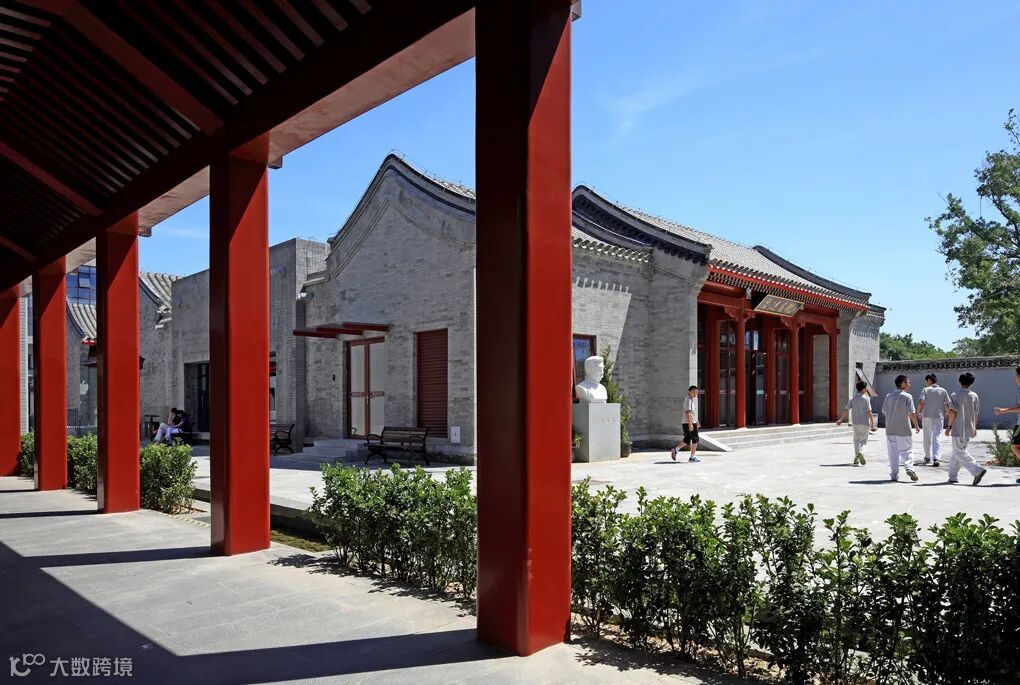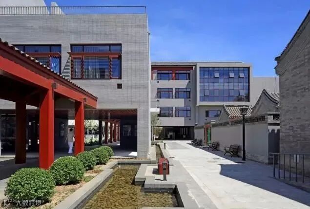 入口东西向的主广场将我分为教学、运动和艺术、生活、管理两部分。新老建筑相互交织,一至四层的院落式布局延续了北京旧城的城市肌理。新建校舍造型简洁大方,在体现教育建筑时代性的同时,又具有传统中式建筑“青砖、灰瓦、红柱子”的意向。