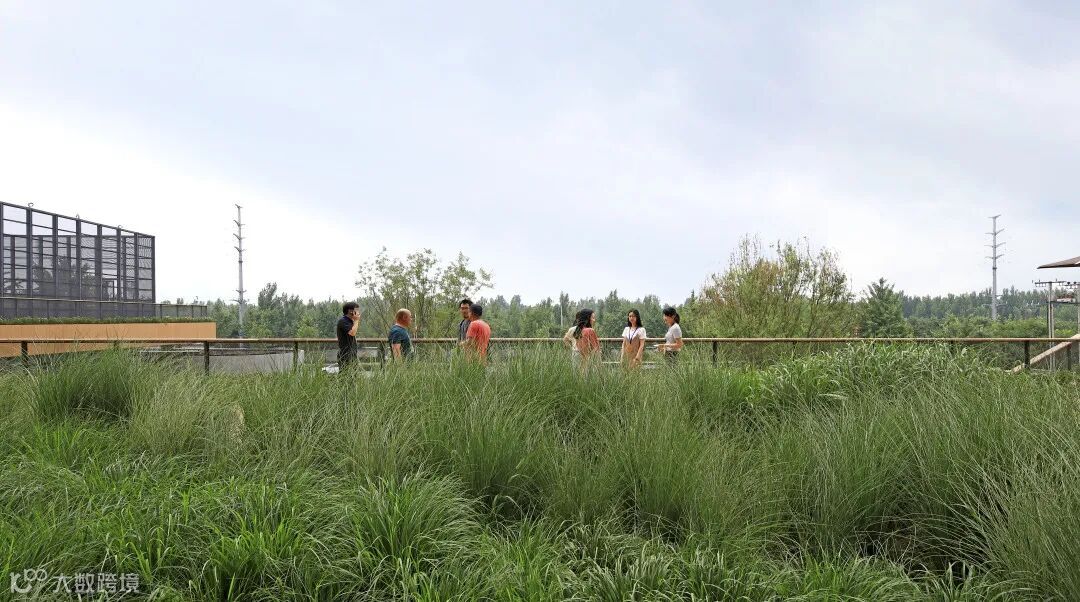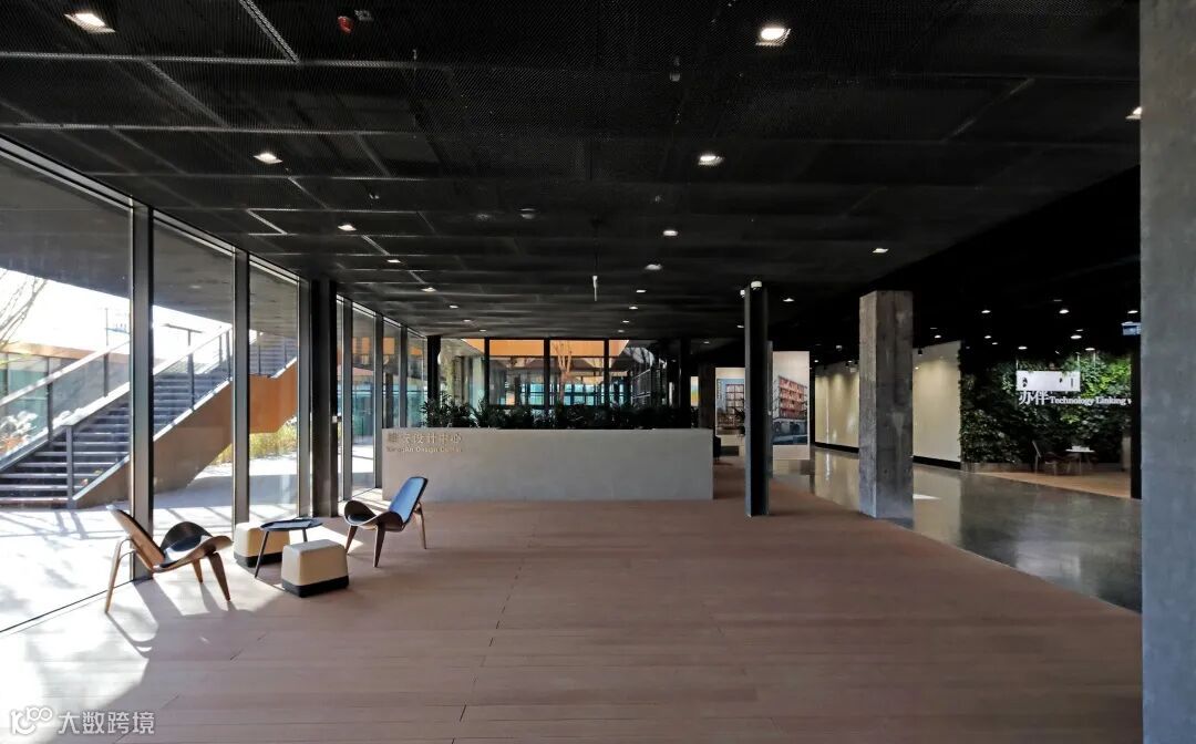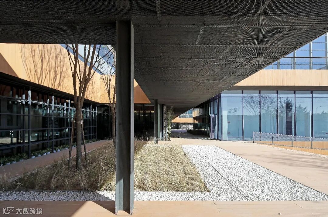 这些都与环境交融在一起,在平台和露台俯仰之间欣赏院子的景色,夏季绿意盎然、秋冬芦苇金黄,犹如置身在公园里办公一般,入驻的设计师小伙伴们可以在廊下开茶会。营造这样的一种意境,用院落与人自然共生的方式来表达对中国文化的一种呼应和理解。