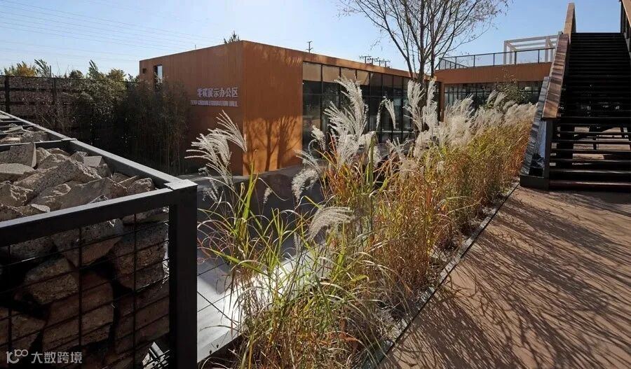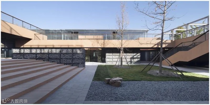 看!这些充满粗犷美感的围墙!整面墙是利用改造过程中拆下来的混凝土碎块,先填充到石笼里,再用叉车把石笼放到架子上。混凝土对环境的破坏是很大的,与其让他破坏环境不如把他用在场地里面,这样既是墙能起到围护的作用,夏天时爬满绿植也形成一道绿化景观。这样一装扮,我的外表美观简洁、内在朴素适宜。