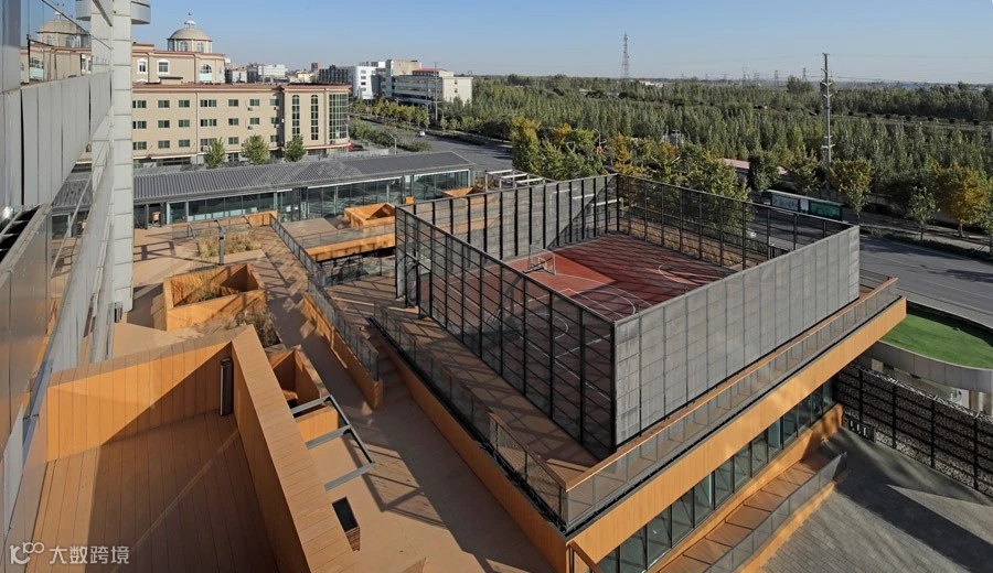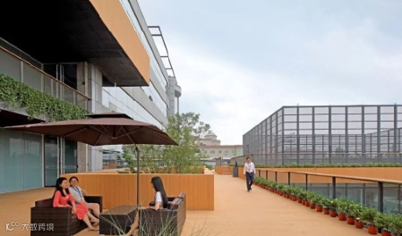不同的院落被串接起来,如主楼屋顶的平台,会议中心屋顶的篮球场。每一层都有一些展示的空间,原来的走廊被打通,这使得很多活动不再拘泥于室内,甚至有一些办公的过程可以放到室外,拿个笔记本,端一杯咖啡放到大的栏板上,会使交流和讨论变得更轻松、更高效。