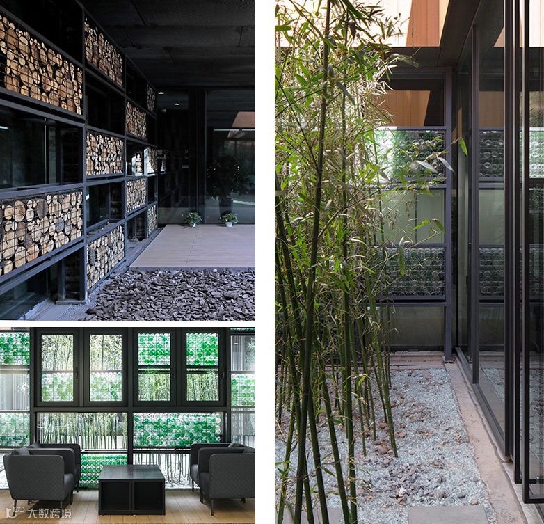 竹子天井小院两侧是两个会议室,这个空间引导你们既可从外面进入,也可从里面过来。因此在某些时候,当里面进行封闭的公示展示时,外面可用于小会议室、小展厅,这样实现了更多的功能。