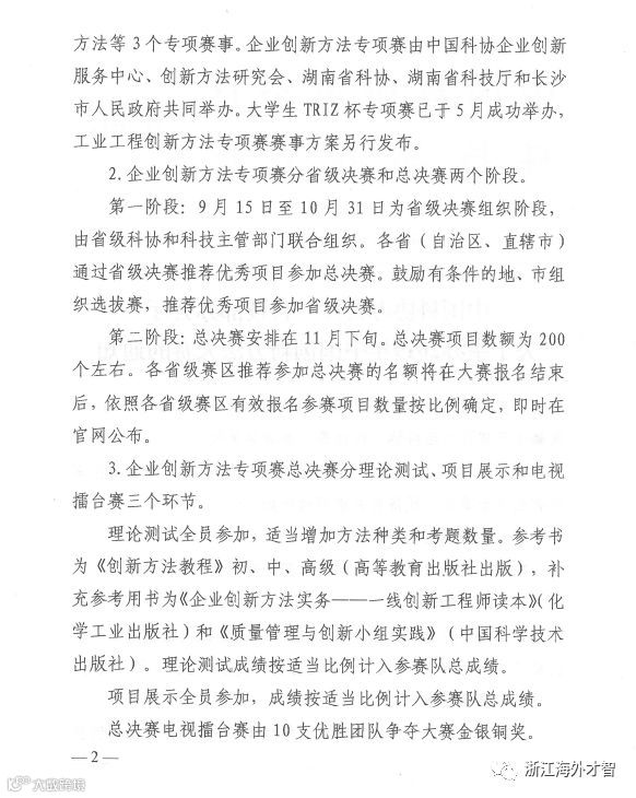 导读:浙江省科学技术协会、浙江省科学技术厅关于转发《中国科协办公厅 科技部办公厅关于举办2019年中国创新方法大赛