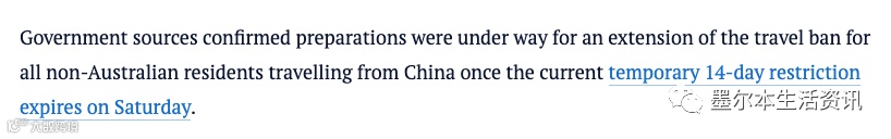 澳洲政府打算延长中国入境禁令