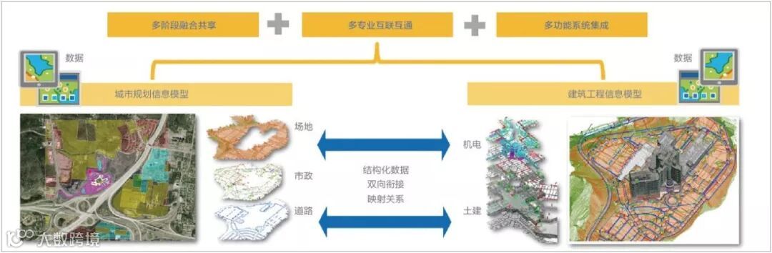 ▲ 建立城市规划设计、建筑工程模型与结构化数据双向衔接、映射关系