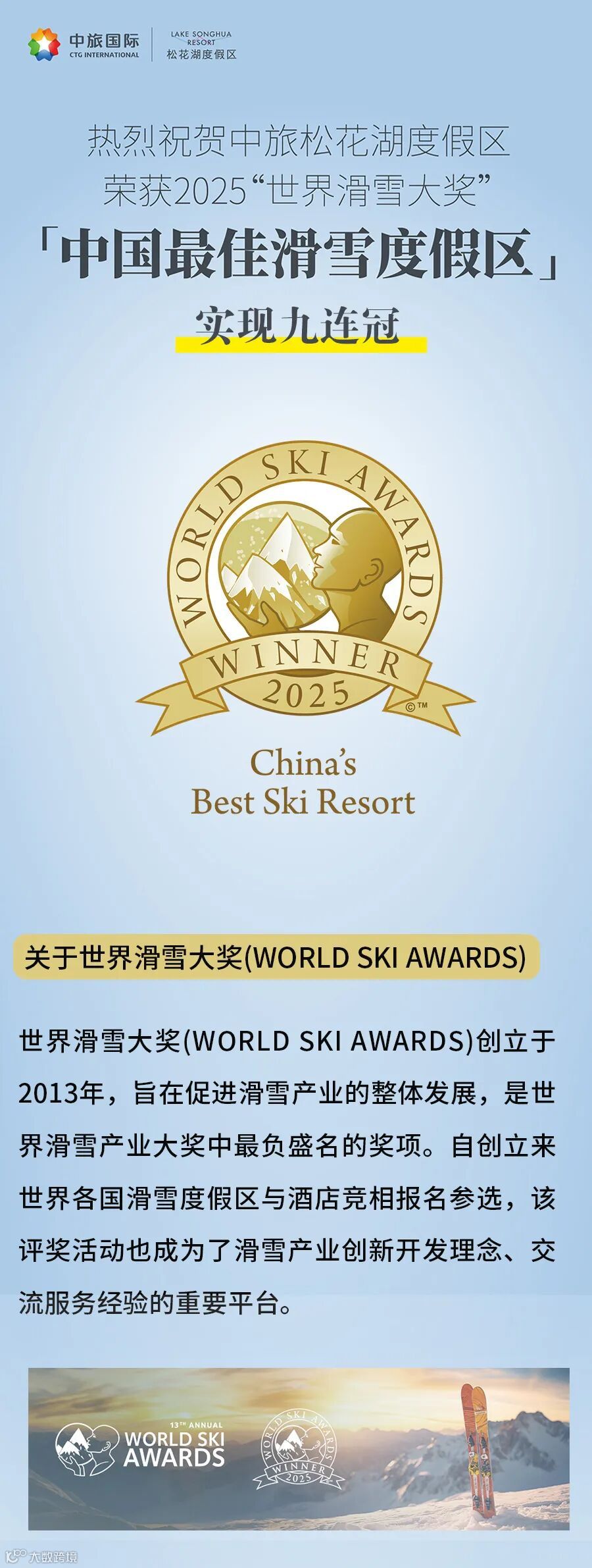 喜报!松花湖度假区再次荣获2025世界滑雪大奖,实现九连冠! 中旅国际 CTG International