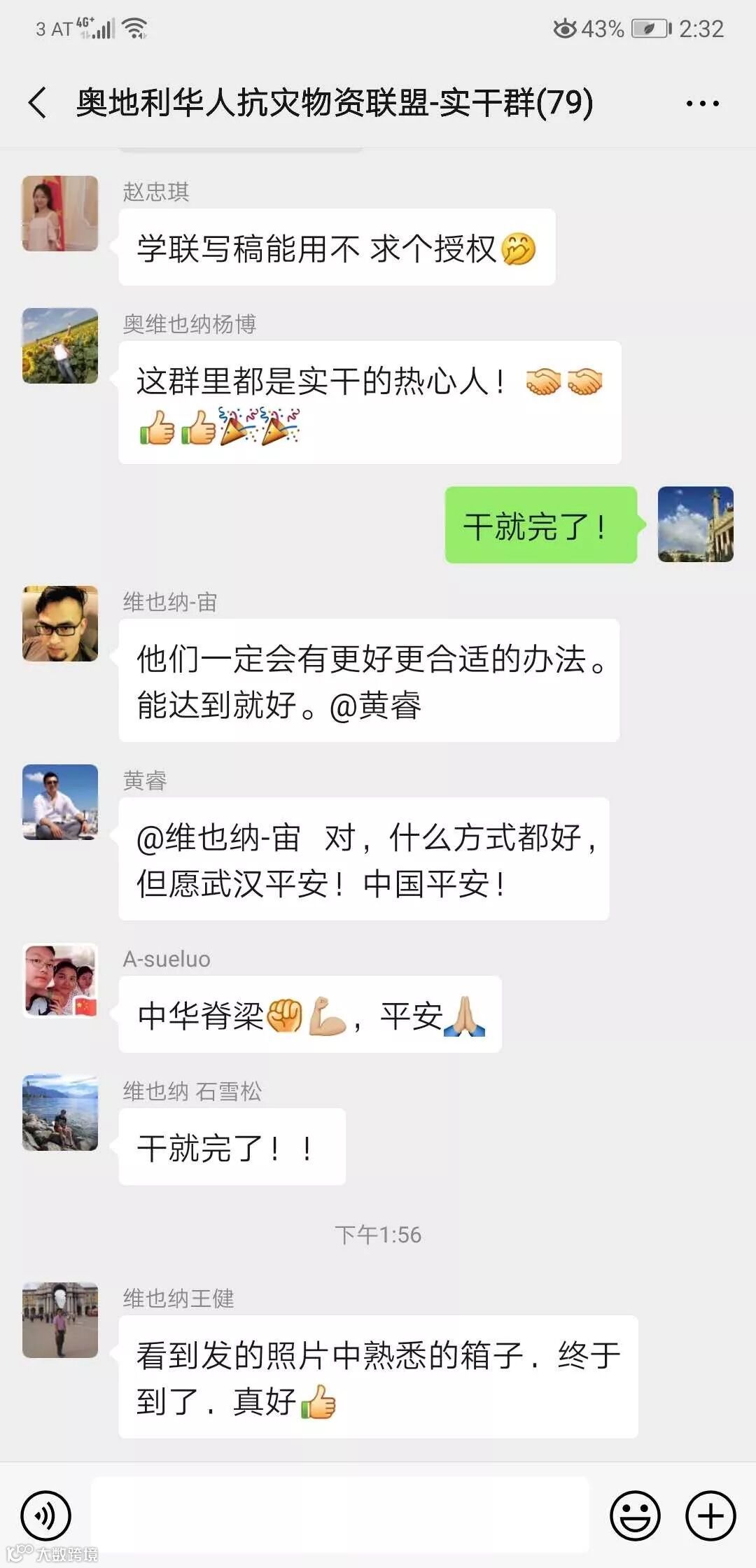 连日来,奥地利中国学联的志愿者不辞辛苦,无私奉献,将一件件医用品、一箱箱物资从查验、清点、装箱到搬运,献出了辛勤的劳动,我们代表所有参与捐赠的奥地利华人向这些志愿者致以崇高的敬意,你们辛苦了!