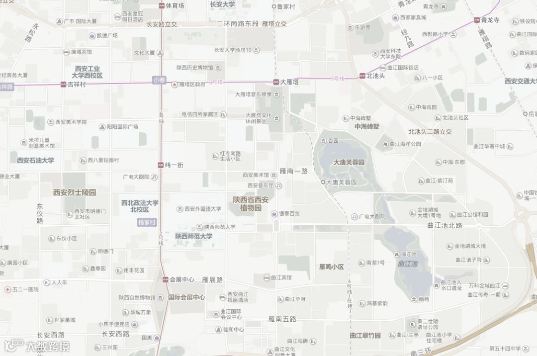 ▲在北纬34.42度处与西安大雁塔景区、植物园、大唐芙蓉园相重合