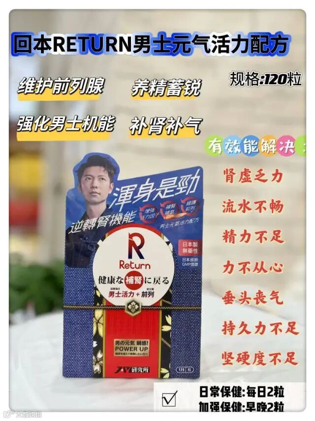 回本男士活力补肾配方120粒:补肾补气,提升体力、魅力、自信,持久硬实力,发挥自如,维护前列健康,改善睡眠中断问题,改善及防止男士型脱发,腰膝不再酸软等。