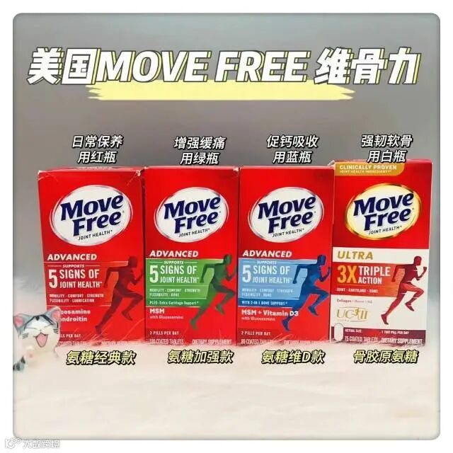 美国Move Free维骨力蓝瓶,是一款全方位关注关节健康的膳食补充剂。其多重修护因子、关节润滑因子、关节舒缓因子以及维生素D3等成分能