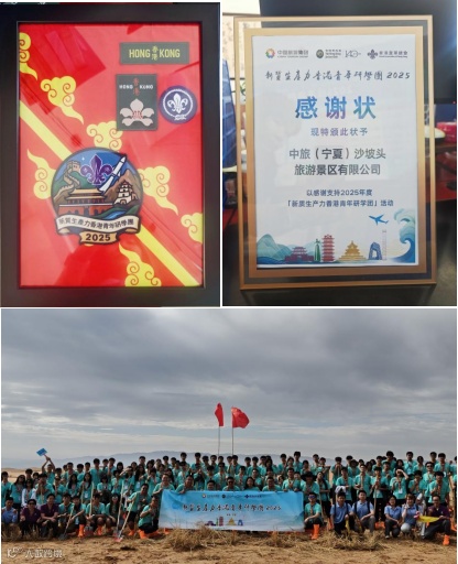 为深入推进爱国主义教育,增强香港学生对祖国及黄河文化的认同感,由中国旅游集团主办、香港赛马会赞助、香港童军总会协办的“香港百万青年看祖国”活动于7月19日至20日在宁夏沙坡头旅游景区顺利开展。此次活动以“铸牢共同体,中华一家亲;青春漠漠搭,现在就出发”为主题,邀请来自香港的百余名高中生共赴祖国山河之约,在治沙体验中实现从普通学生到“山河守护者”的身份蜕变。