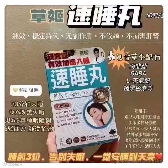 现在很多人都因为工作焦虑工作压力大导致失眠 皮肤变差掉发作为一个爱睡觉的人来说 睡眠真的重要一旦睡眠不充足真的皮肤状态下降超多如果有跟我有一样情况的姐妹快试试这款草姬速睡丸,真的超快入睡!