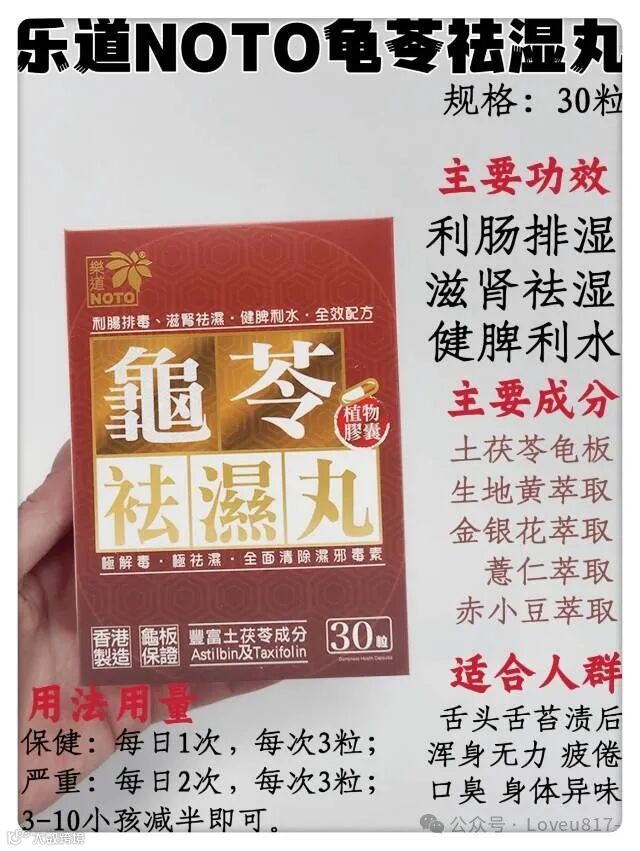 最近天天熬夜加班晚上回到家又只想吃点辣的凉的加上南方的回南天也来了空气更是潮湿到不行同事都看不下去了,上班搭子让我试试乐道龟苓祛湿丸说是香港老品牌,已经有37年历史了植物配方,吃着安心用着放心!查了一下成分表,果然有点东西。
