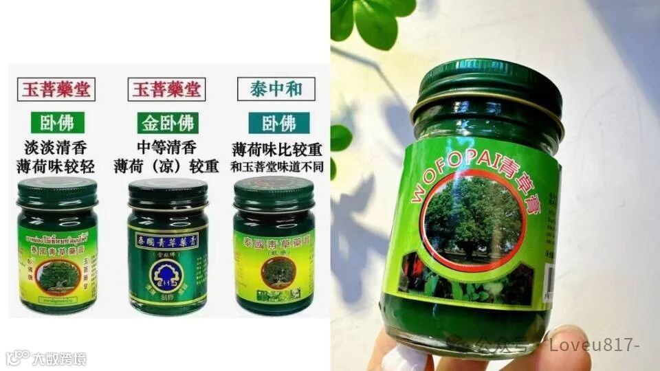 金卧佛/卧佛/树标卧佛泰国必买清单之一。被叮咬的疙瘩又痒又肿 涂上青草膏一分钟就可以立马消肿止痒!而且皮肤有炎症,过敏,跌打扭伤,烫伤,驱蚊,身体疲劳,可当按摩膏,活血散瘀。简直是一款万能膏哦!清新香味 纯植物提取 小孩子也可以放心使用哦!