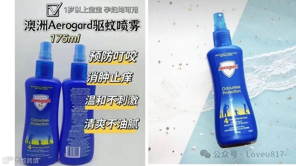 澳洲最牛驱蚊喷雾大瓶175ml喷一下防护6小时!澳洲国家级科研机构CSIRO研发,10%派卡瑞丁低敏配方,有效驱蚊不刺激,敏肌,宠物友好,防蚊更安心。黄磊推的驱蚊神器,防蚊,苍蝇和其他惹人厌及咬人的昆虫,适用于12个月或以上儿童。