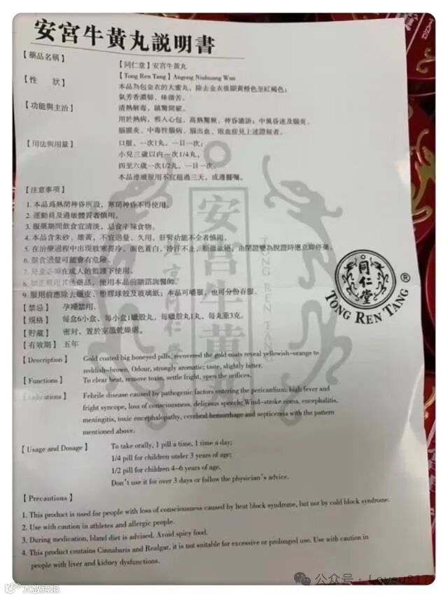 亲戚家的长辈突然中风昏迷情况危急。亲戚想起前几天我在香港同仁堂给她带回来的安宫牛黄丸。赶紧给长辈服用后,奇迹发生了!长辈的症状逐渐有所缓解,为后续的治疗争取了宝贵的时间。安宫牛黄丸真的不愧是中医的瑰宝清热解毒、镇惊开窍的功效在关键时刻发挥了巨大作用。如果你的家里有老人,真的强烈建议备上几颗,说不定在关键时刻就能救回亲人的生命。亲身经历后的真心推荐!