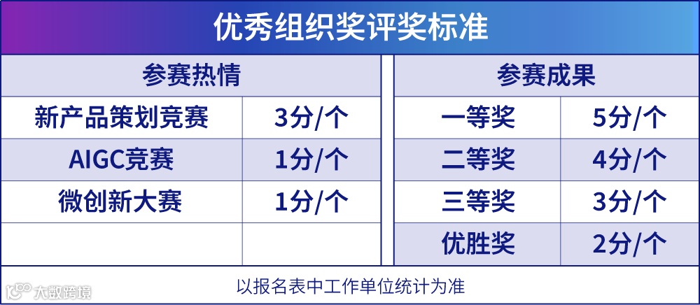 本次大赛将根据各单位(中旅国际内部)参赛热情和作品质量两个维度进行评分,积分前三名将授予优秀组织奖!