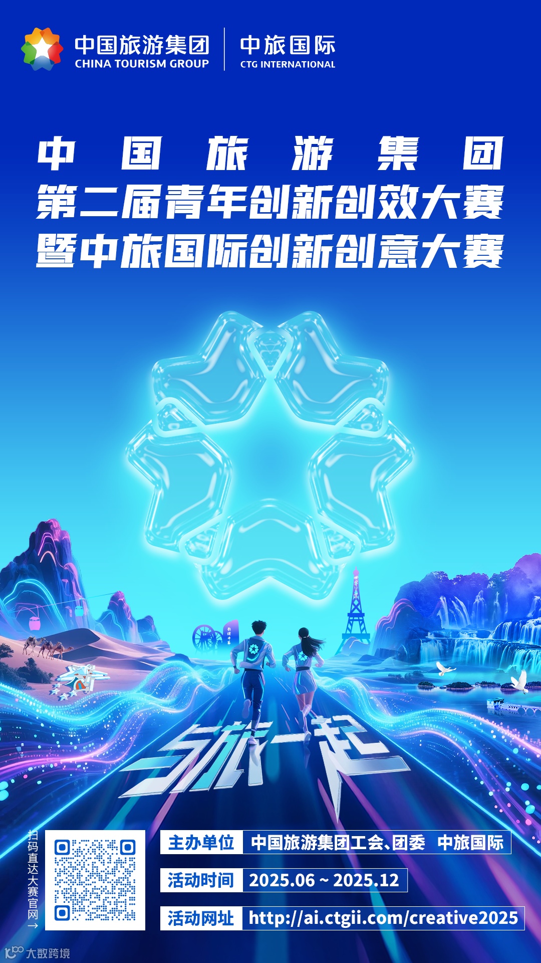2025,中国旅游集团“创新创意年”的号角已然吹响!为了点燃每一份创造力,让文化、科技与旅游碰撞出更酷炫的火花,集团工会、集团团委联合中旅国际,正式启动中国旅游集团第二届青年创新创效大赛暨中旅国际创新创意大赛!