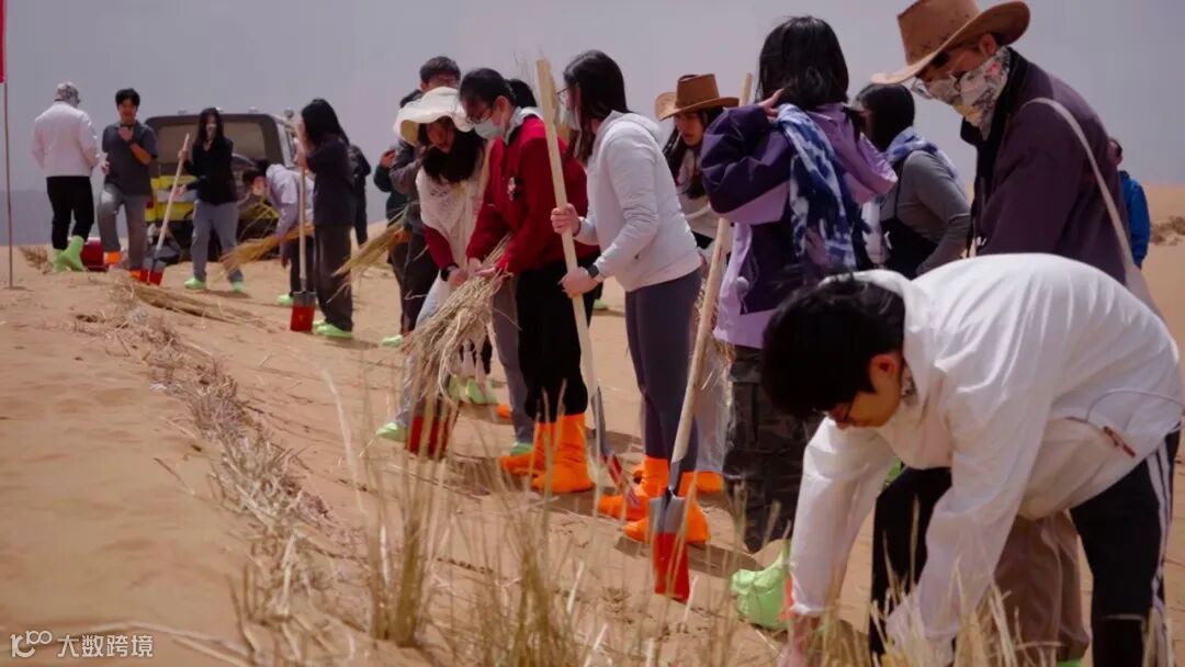 在研学导师的指导下,他们手持工具、弯腰扎草、挥铲埋沙,体验“世界治沙奇迹”麦草方格固沙技术,在沉浸式劳动中体悟到“人进沙退”背后的坚韧精神。