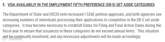 事实上,1月份,美国国务院在发布签证公告时,就曾预警了EB-5预留签证项目出现排期的风险。