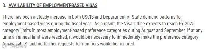事实上,国务院对EB-2签证配额告罄的情况早有预警——早在今年8月和9月份的签证公告中,就已多次发出明确提示: