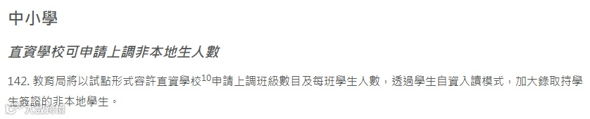 在中小学教育方面,《施政报告》提出,教育局将以试点方式允许直资学校申请增加班级数目及每班学生人数,通过自资入学模式,吸纳更多持学生签证的非本地学生,进一步丰富香港教育体系的国际化和多样性。