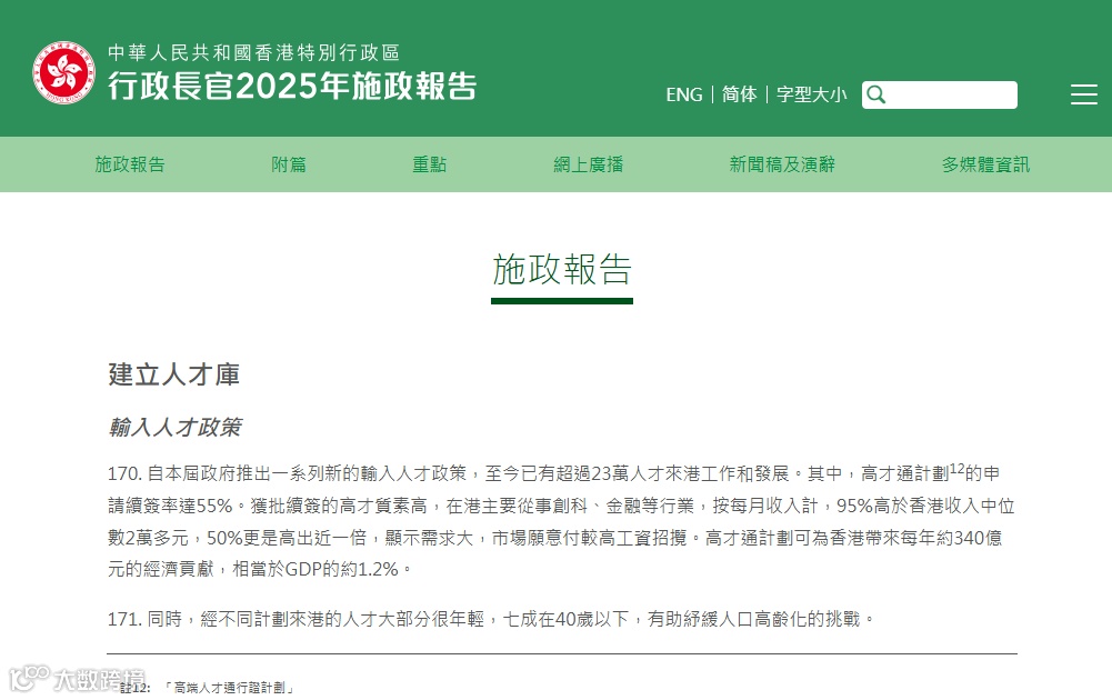 最新《施政报告》指出,香港自2022年《施政报告》推出一系列人才输入计划之后,至今已有超过23万人才来港工作和发展。