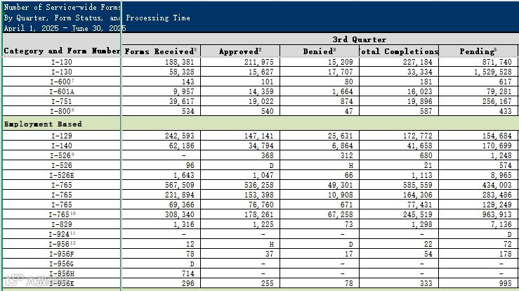 近日,美国移民局更新了2025财年第三季度职业移民递件和审批的最新数据。这一季度数据的显著变化,在移民行业引发了广泛关注。下面,小侨就带大家了解一下。