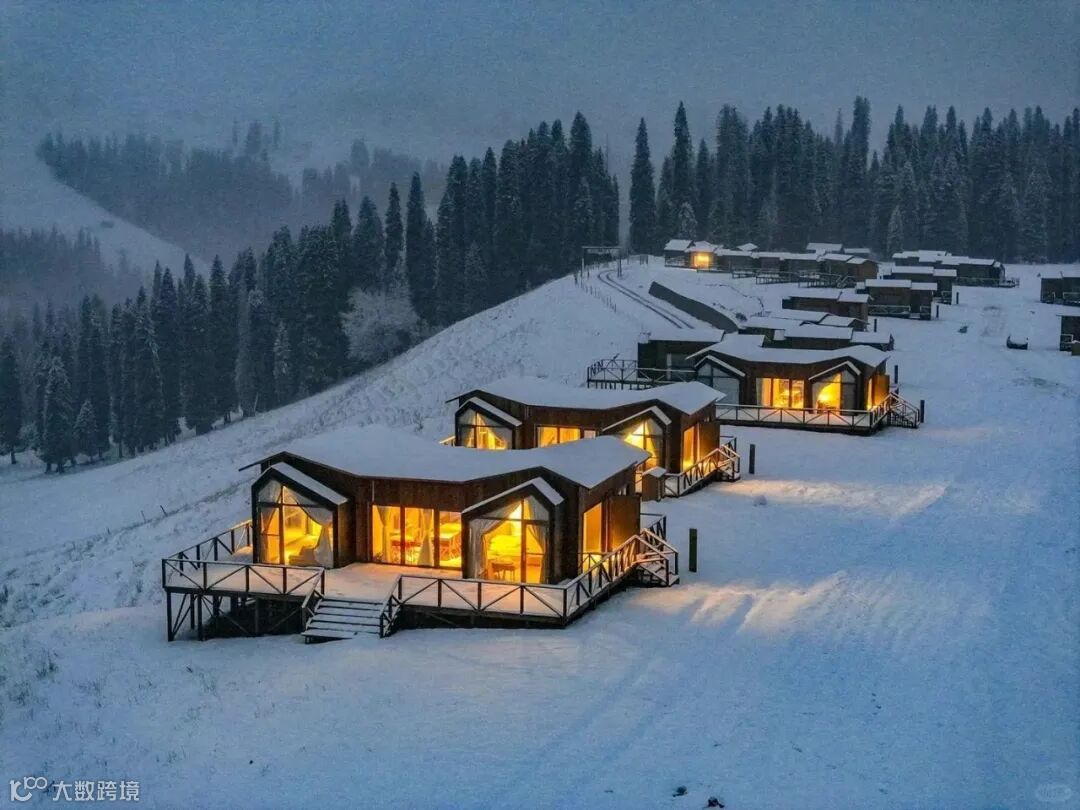 窗外冷风吹拂,屋内暖意融融。库尔墩·柏睿营地的小木屋里配有全屋智能化系统、电采暖和空调系统,完全不用担心寒冷,还有全景落地窗,让你饱览雪岭盛景。