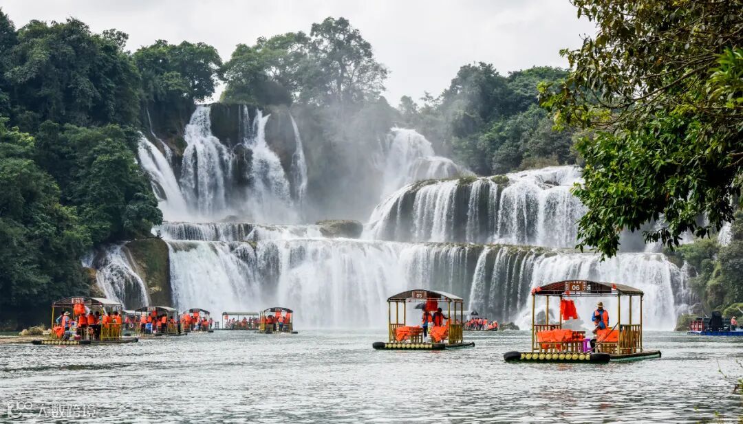 德天跨国瀑布横跨中越两国,是亚洲第一、世界第四大跨国瀑布,也是电视剧《花千骨》的取景地,自然风采和异国风情在这里交织汇聚,氤氲成一幅流动的山水画卷。