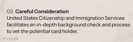 “金卡”官网明确指出,美国公民及移民服务局(USCIS)将对申请人进行深入的背景调查与流程审核,以筛选合格的持卡人。众所周知,美国移民局在资金审核方面极为严格,任何不符合反洗钱规定的资金都将无法通过审批。