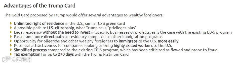 • 持卡人有望通过专属路径加速入籍(具体细则待公布),被特朗普称为“特权加码”。